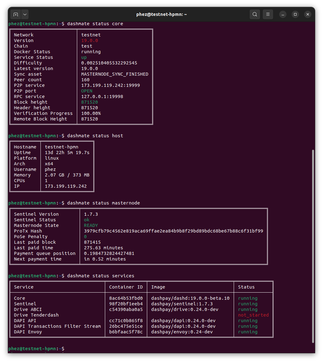You can manage your masternode status, configuration, and running state entirely from within dashmate. Use the built-in help system to learn more: