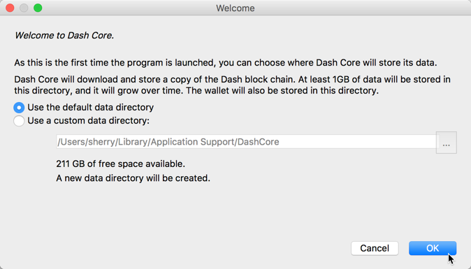 Running Dash Core for the first time#