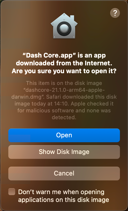 Opening the Dash Core .dmg file#