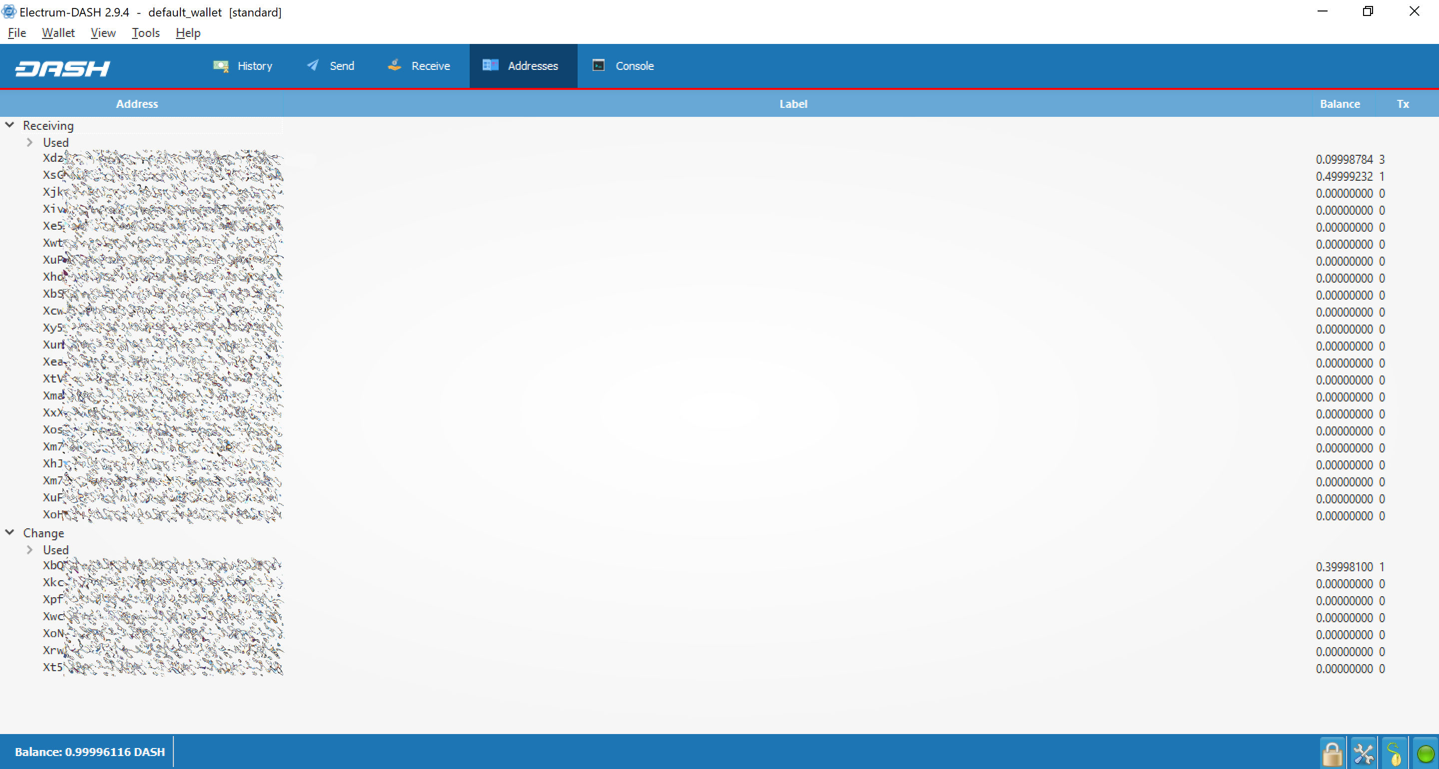 Receiving and change addresses in Dash Electrum#