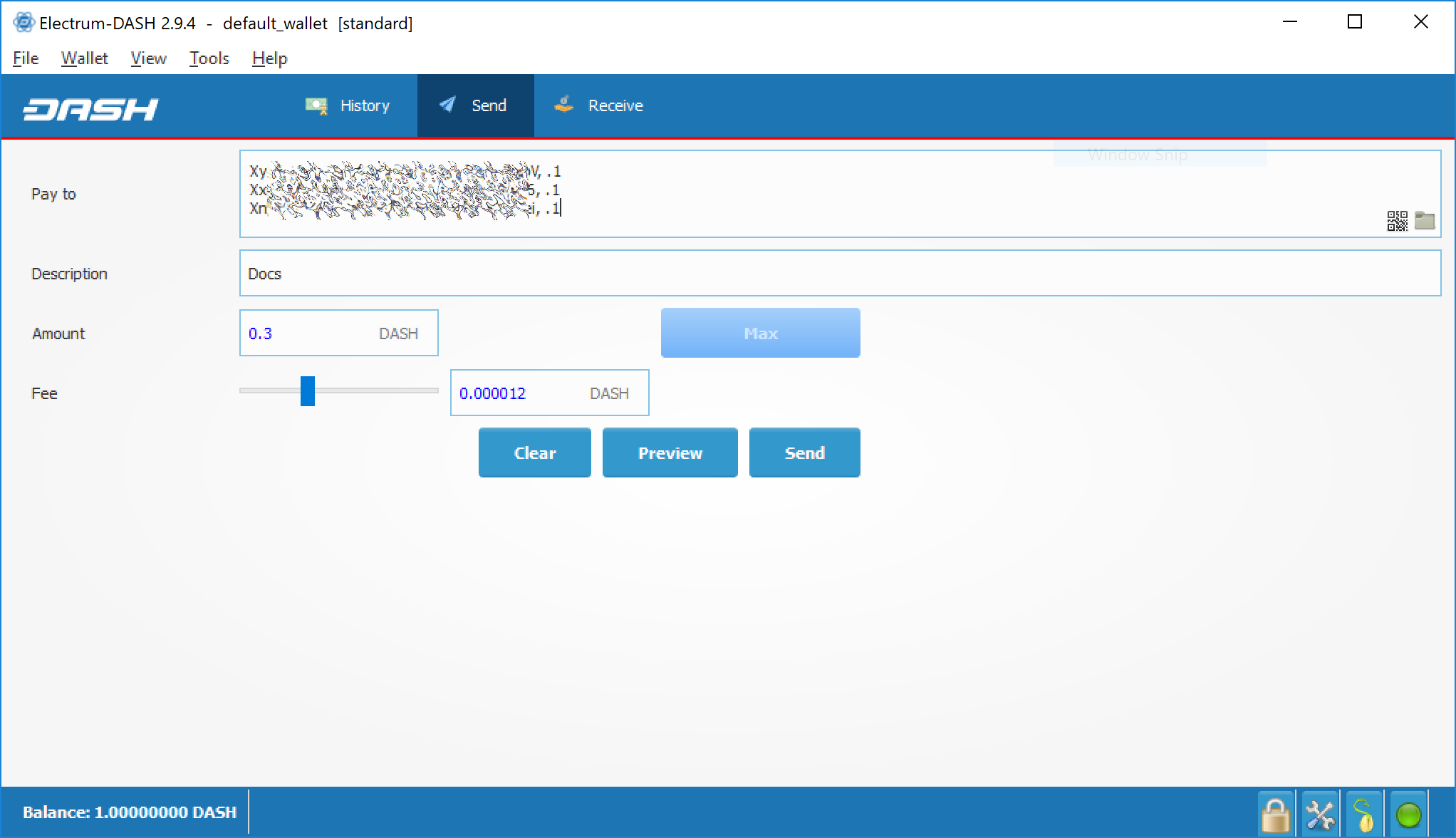 Dash Electrum freezes when I try to send Dash#